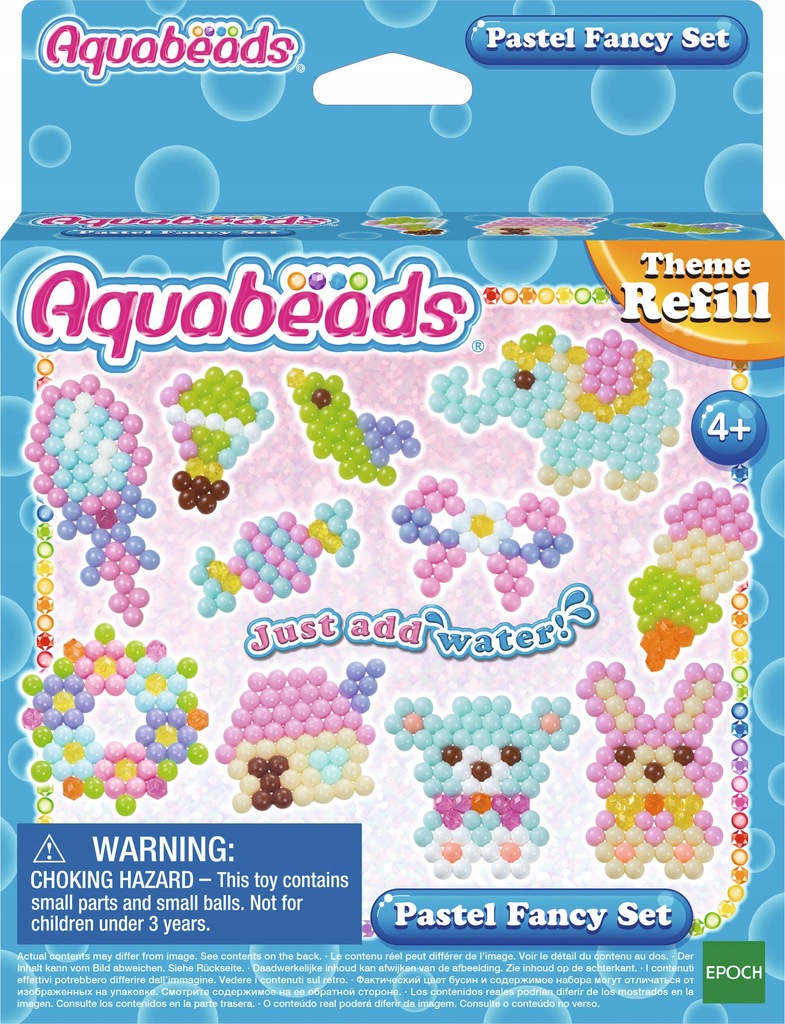 Zestaw uzupełniający Pastelowa fantazje Aquabeads przeniesie nas w cudowny świat wyobraźni i fantazji. Miękkie pastelowe kolory nadają kreacjom wyjątkowy wygląd. Szablony dołączone do zestawu koralików ułatwią stworzenie słonia, niedźwiedzia, zajączka, domku i wielu innych figurek. Zestaw zawiera 600 koralików Aquabeads do zabaw kreatywnych w 11 kolorach oraz szablony. Zestaw uzupełniający koralików Aquabeads jest idealny dla dzieci, które posiadają zestaw akcesoriów Aquabeads niezbędnych do tworzenia kreacji. Akcesoria można nabyć osobno lub w innych, gotowych do zabawy zestawach koralików Aquabeads. Oryginalne zabawki Aqubaeads od EPOCH zapewniają bezpieczną zabawę bez potrzeby użycia żelazka. Koraliki Aquabeads połączą się w magiczny sposób po spryskaniu wodą.