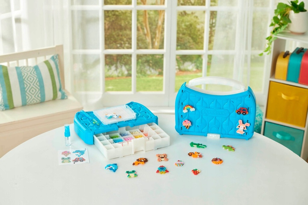 Wspaniała kreatywna zabawa z koralikami Aquabeads dla dzieci i dorosłych! Zestaw zawiera 900 koralików, z których można stworzyć mnóstwo wyjątkowych figurek i przedmiotów. Koraliki Aquabeads połączą się w magiczny sposób po spryskaniu wodą. Aquabeads, to bezpieczna zabawa bez kleju, bez nożyczek i bez żelazka! Kompletny zestaw zawiera wszystko, co jest potrzebne do zabawy: 900 koralików w 25 kolorach, paletę do tworzenia z nowoczesną tacką do układania koralików, wygodną szkatułkę do przechowywania i transportu, aplikator, spryskiwacz, zaczepy do mocowania gotowych kreacji oraz szablony. Prawdziwą atrakcją jest paleta z nowoczesną tacką do układania Pop-Up. Teraz koralikowe dzieła można tworzyć bez przerwy! Gotową kreację można zdjąć z tacki od razu po spryskaniu koralików wodą! Wystarczy lekko nacisnąć tackę, odłożyć kreację do wyschnięcia i tworzyć dalej. Poznaj oryginalne koraliki Aquabeads wyprodukowane przez japońską firmę EPOCH. Wyobraźnia, kreatywność, sztuka, zabawa i rozwój. Polecamy od 4 roku życia.