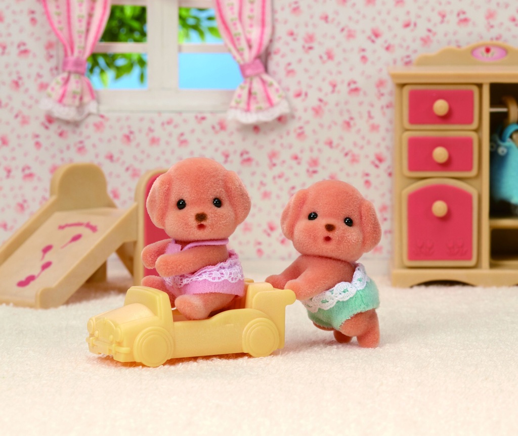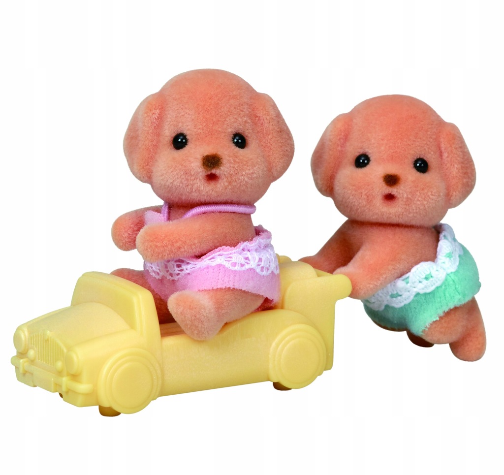 Zestaw zawiera dwie urocze figurki małych pudli z pojazdem pchaczem. Figurki uroczych zwierzątek Sylvanian Families pokryte są jedwabistym futerkiem i mają ruchome główki, rączki i nóżki. Zabawki Sylvanian Families wyróżnia najwyższa jakość wykonania oraz miłość do szczegółów. Polecamy od 3 roku życia.