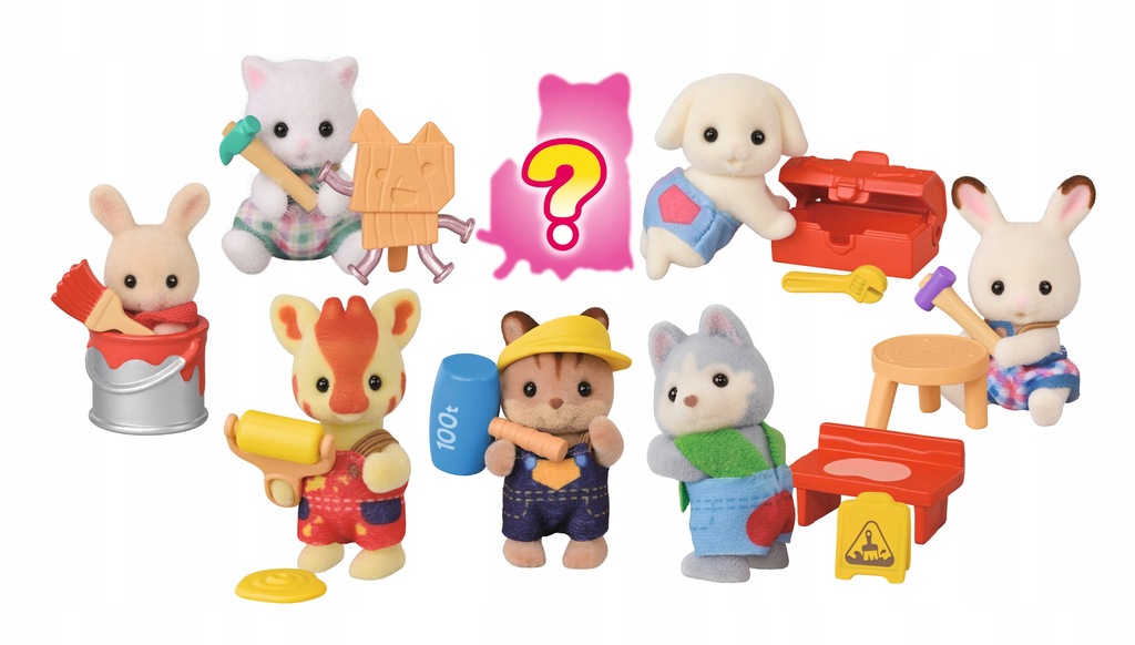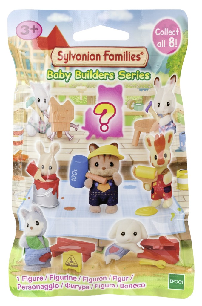 Mieszkańcy krainy Sylvanian Families uwielbiają niespodzianki, a najwięcej tajemnic ukrywa się w torebkach niespodziankach! Każda tajemnicza torebka zawiera uroczą figurkę malucha z krainy Sylvanian Families oraz malutkie akcesoria do zabawy. Zagadnij, jaka niespodzianka ukryła się w saszetce, a potem sprawdź, kto jest w środku. Aż 8 figurek do odkrycia! Zbierz je wszystkie. Maleństwo Flora Rabbit przegląda skrzynkę z narzędziami, dziecko biszkoptowych królików wpadło do puszki z farbą, dziecko żyrafek z wałkiem do malowania pochlapało podłogę, dziecko piesków husky usiadło na świeżo malowaną ławkę, dziecko perskich kotków próbuje wbijać gwoździe, dziecko królików z czekoladowymi uszami naprawia taboret, dziecko wiewiórek podnosi 100 tonowy młot. Jest też jedna tajemnicza figurka. Zabawki Sylvanian Families rozwijają wyobraźnię i zachęcają dzieci do zabawy w odgrywanie ról. Zabawa z figurkami Sylvanian Families rozwija kreatywność i uczy emocji poprzez tworzenie i opowiadanie historii na podstawie codziennych doświadczeń i obserwacji świata. Zabawki Sylvanian Families tworzy japońska firma Epoch od 1985 roku. Wyróżnia je najwyższa jakość oraz wyjątkowa dbałość o szczegóły. Figurki Sylvanian Families mają ruchome główki, rączki i nóżki. Polecamy od 3 roku życia.