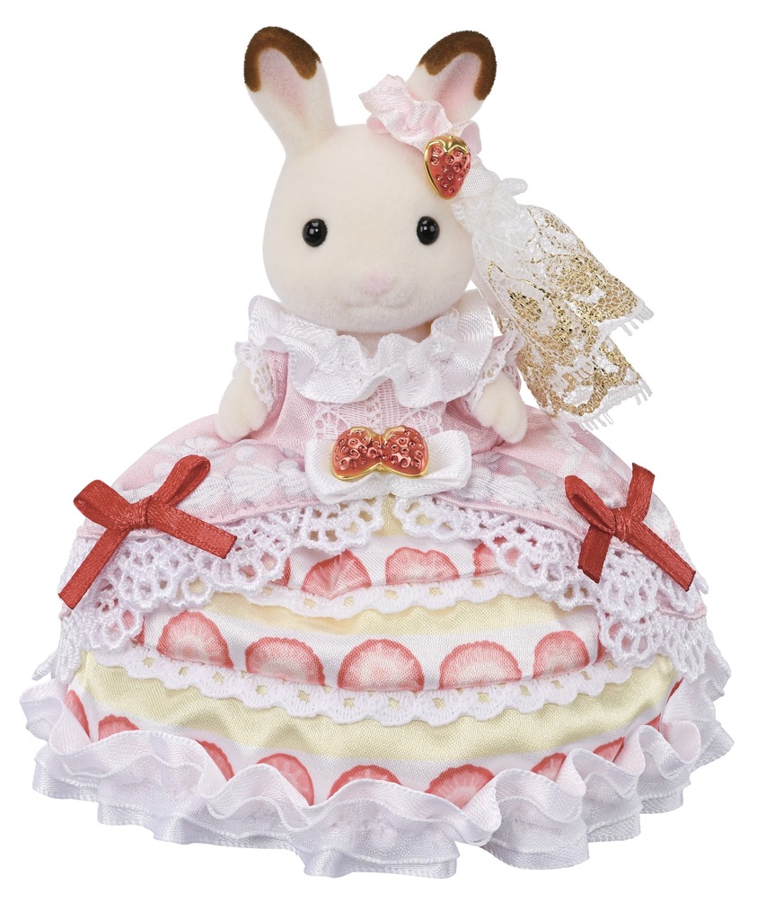 Z okazji 40 rocznicy narodzin Sylvanian Families Freya z rodziny królików z czekoladowymi uszami założyła specjalnie zaprojektowaną truskawkową suknię oraz piękną truskawkową biżuterię. Czy nie wygląda czarująco? Koronkowe zdobienia i złocisty, mieniący się welon dodają tej pięknej kreacji jeszcze więcej uroku i szyku. Zestaw zapakowano w specjalnie zaprojektowane jubileuszowe opakowanie, które czyni go idealnym prezentem lub cennym elementem kolekcji każdego fana Sylvanian Families. Figurkę wykonano z wysokiej jakości materiałów i pokryto charakterystycznym, mięciutkim, aksamitnym futerkiem. Zabawa figurkami Sylvanian Families rozwija wyobraźnię, zachęca do twórczego odgrywania ról i pozwala tworzyć wyjątkowe historie inspirowane codziennym życiem. Zestaw można łączyć z innymi domkami, meblami i akcesoriami Sylvanian Families, co daje nieskończone możliwości zabawy i tworzenia własnych opowieści. Zabawki Sylvanian Families są tworzone przez japońską firmę EPOCH od 1985 roku. Polecamy dla dzieci od 3. roku życia.