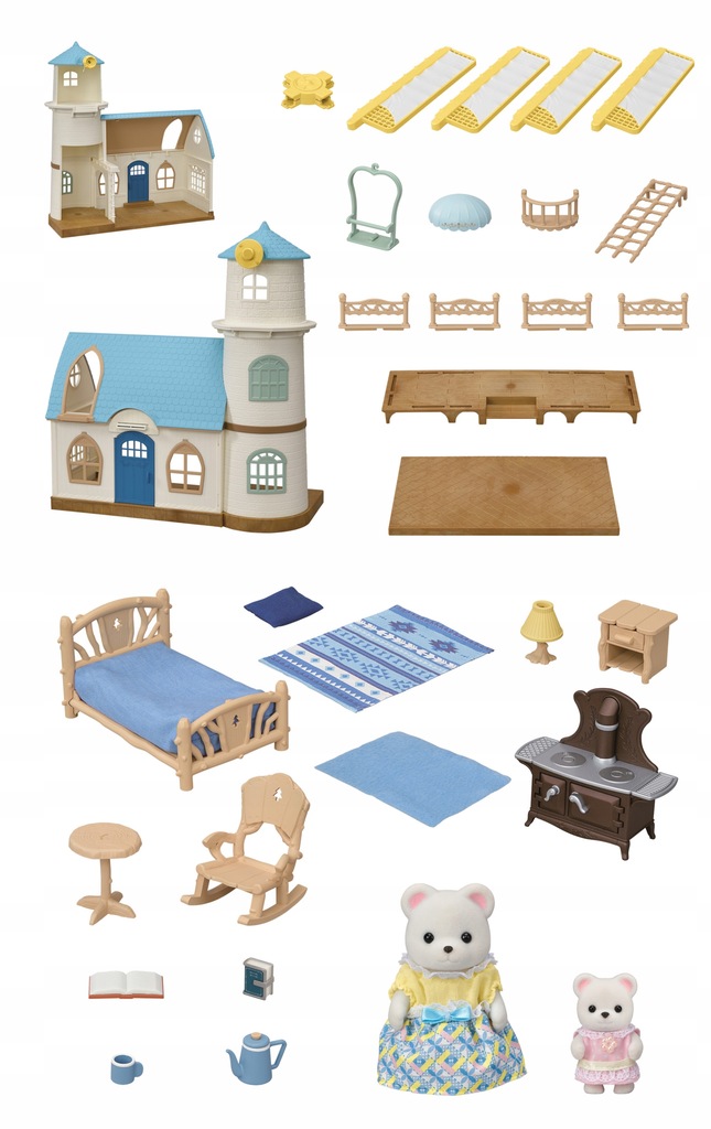 Wiatrak z niebieskim dachem Sylvanian Families jest idealnym prezentem dla wszystkich miłośników uroczych zwierzątek Sylvanian Families pokrytych jedwabistym futerkiem. W wiatraku Sylvanian Families mieszka rodzina misi polarnych. Na pierwsze piętro można dotrzeć windą. W tym celu trzeba obracać pokrętło z tyłu wiatraka. Kiedy winda jedzie w górę lub w dół, poruszają się również skrzydła wiatraka. Drzwi wejściowe można otworzyć, a z balkonu na pierwszym piętrze można podziwiać wspaniałe widoki. Zestaw Wiatrak Sylvanian Families zawiera wiatrak z ruchomymi skrzydłami i windą, łóżko z pościelą, stolik nocny z lampką i książką, kuchenkę z dzbankiem na herbatę i filiżanką, stół, fotel bujany, książkę, milutki koc i dwie urocze figurki misi polarnych. Wiatrak można połączyć z innymi zestawami, domkami, pojazdami, meblami i akcesoriami Sylvanian Families. Zabawki Sylvanian Families wyróżnia najwyższa jakość wykonania oraz miłość do szczegółów. Figurki uroczych zwierzątek Sylvanian Families mają ruchome główki, rączki i nóżki. Zabawki Sylvanian Families polecamy dla dzieci od 3 roku życia.