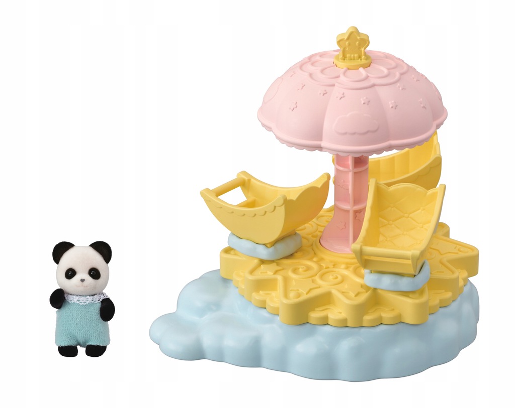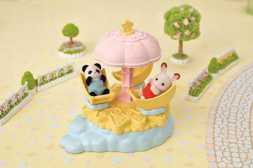 Zabawna karuzela gwiazda jest ulubioną atrakcją małego misia Pandy w wesołym miasteczku Sylvanian Families. W karuzeli zmieści się trójka dzieci. Żeby uruchomić karuzelę, należy przekręcić gwiazdę umieszczoną na daszku. Wtedy fotele oraz gwiaździsta platforma zaczną wirować. Zestaw Zabawna karuzela gwiazda zawiera małą, uroczą figurkę dziecka z rodziny Pandy. Figurka poryta jest miłym, delikatnym futerkiem. Zestaw Zabawna karuzela gwiazda można połączyć z innymi zestawami, domkami i pojazdami Sylvanian Families. Zabawki Sylvanian Families wyróżnia najwyższa jakość wykonania oraz miłość do szczegółów. Figurki mają ruchome główki, rączki i nóżki.