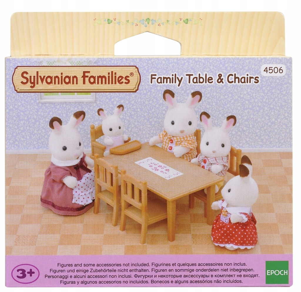 Zestaw stół i krzesła do jadalni to idealne wyposażenie wnętrza domku Sylvanian Families. Bardzo ważnym meblem w każdym domu jest stół, przy którym zmieści się cała rodzina. Nieważne, czy organizujesz niedużą kolację dla najbliższych, czy może spotkanie rodzinne z dziećmi, dziadkami i kuzynami. Solidny stolik jest doskonałym uzupełnieniem każdej jadalni. Zestaw stół i krzesła do jadalni zawiera stół, 4 krzesła i krzesełko dziecięce. Zestaw stół i krzesła do jadalni Sylvanian Families można połączyć z innymi zestawami, domkami, meblami i akcesoriami Sylvanian Families. Zabawki Sylvanian Families wyróżnia najwyższa jakość wykonania oraz miłość do szczegółów. Figurki uroczych zwierzątek Sylvanian Families pokryte są jedwabistym futerkiem i mają ruchome główki, rączki i nóżki. Zabawki Sylvanian Families polecamy dla dzieci od 3 roku życia